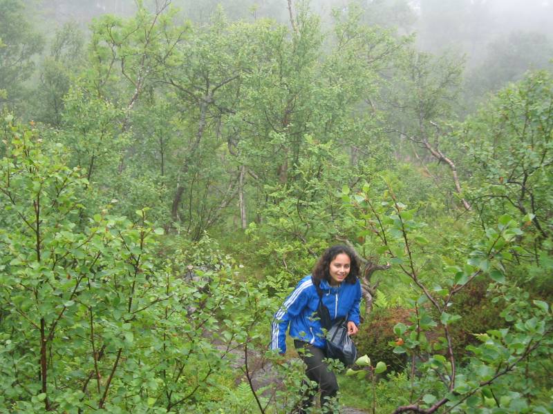Davisha emerges from the rugged vegetation.