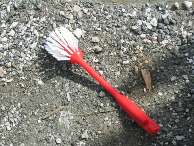 A brush for washing dishes. I dropped my old one behind the refrigerator. And I guess I just dropped this one on the ground at the bus stop...