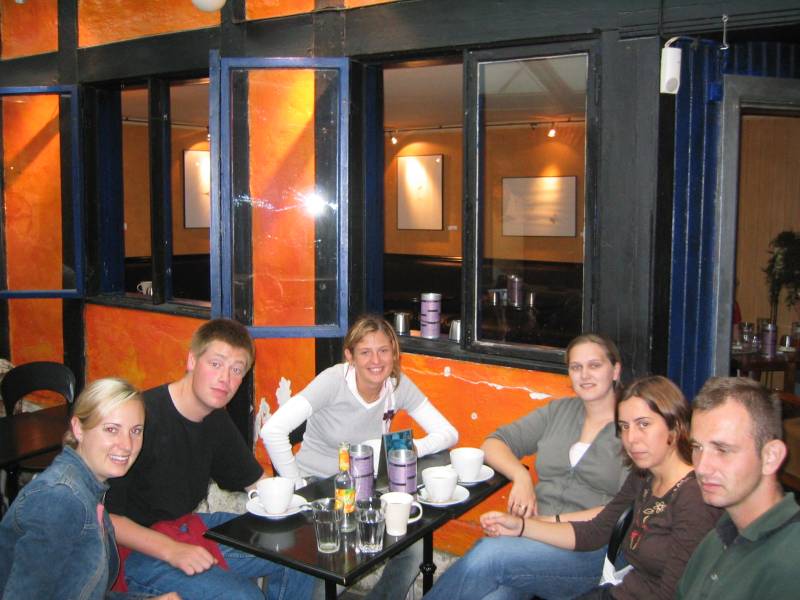 Michelle, Ronan, Virginia, Jill, Rita, and Igor in one of the many Trondheim cafes that did not have backgammon.