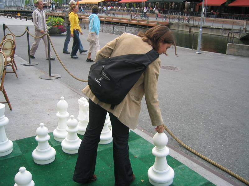 Rita demonstrates the Shepherd's Mate. Luckily, I got the people in the background for perspective -- Rita is actually a normal-sized person.